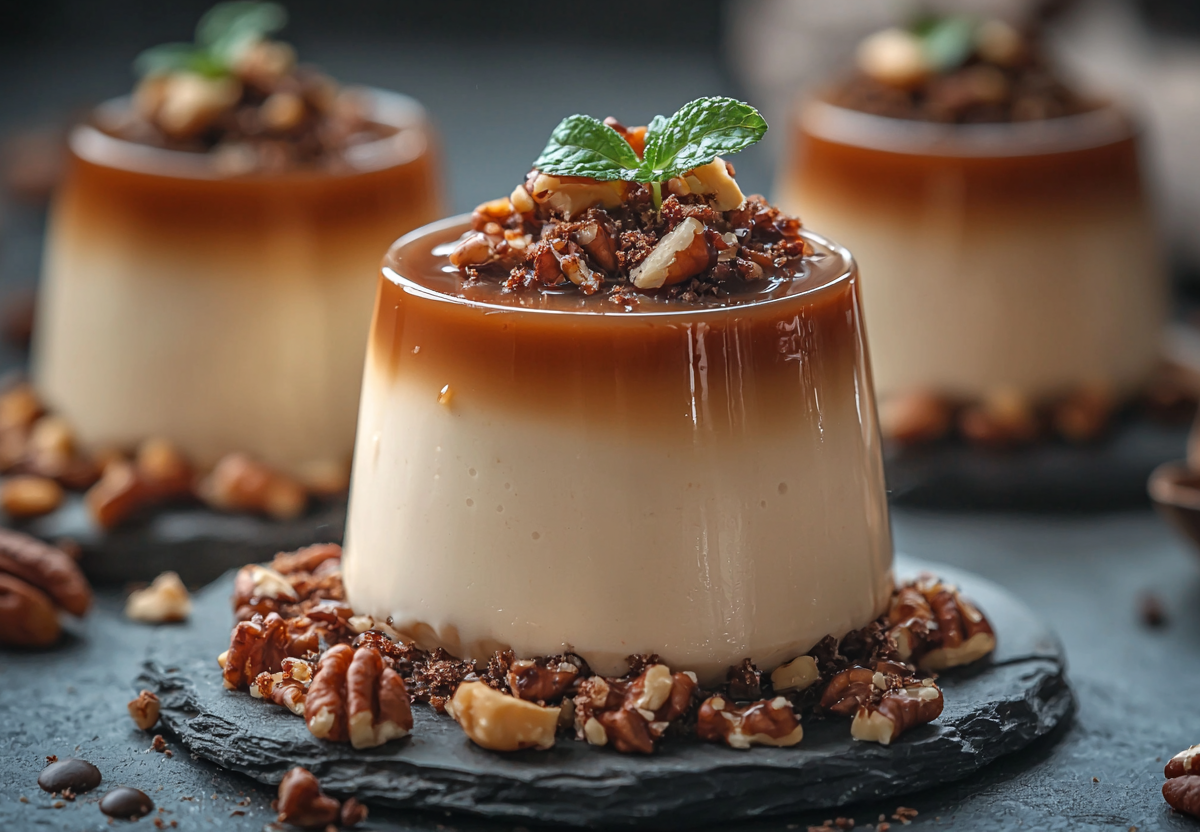 Готовлю я так: 15 граммов желатина заливаю 200 мл сливок и оставляю на 5 минут для набухания. Затем нагреваю на медленном огне, постоянно помешивая, до полного растворения желатина. 2 чайные ложки растворимого кофе заливаю 20 мл кипятка и добавляю в сливочную смесь. Вмешиваю 2 столовые ложки сахара и 200 мл ряженки. Разливаю по формочкам и убираю в холодильник на 4–6 часов до полного застывания. Перед подачей опускаю формочки в горячую воду на 10–15 секунд и аккуратно выкладываю десерт на тарелки. Украшаю дроблеными орехами — они идеально дополняют кофейный вкус.
