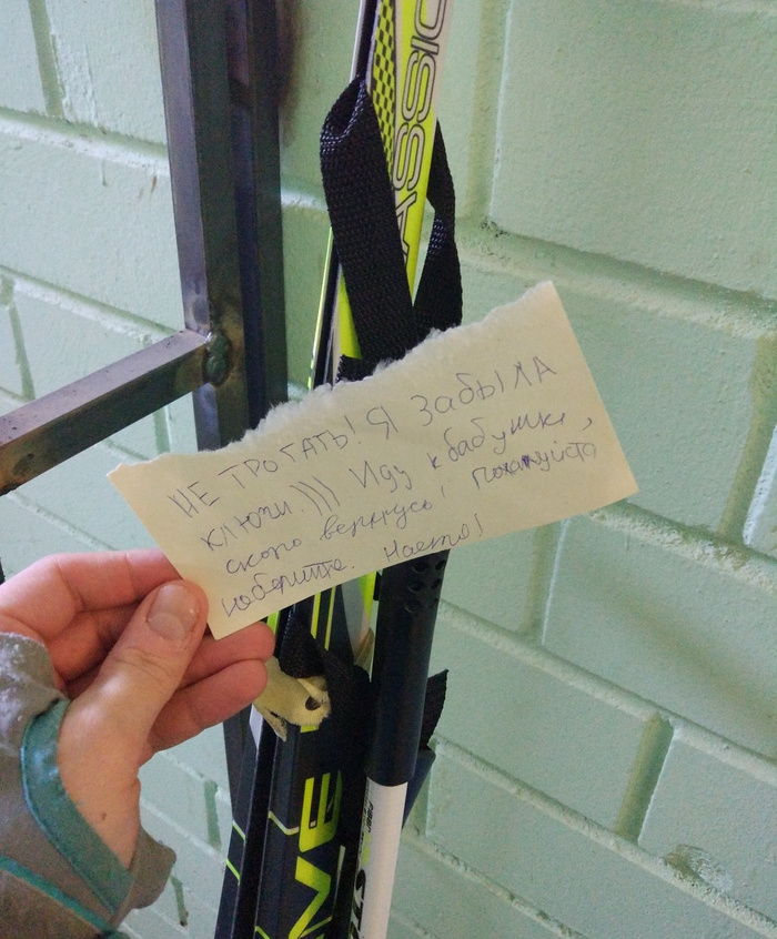 Девочка по имени Настя оставила в подъезде своего дома лыжи, так как забыла ключи от квартиры и решила вернуться за ними к бабушке. Казалось бы, обычная ситуация, если бы не одно «но». Школьница решила не брать лыжи с собой, однако явно переживала за их сохранность, поэтому прикрепила к ним милейшую сопроводительную записку.