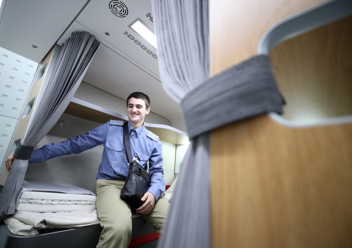 Боковые полки в вагоне оборудованы шкафчиками для личных вещей, сообщает ТАСС.