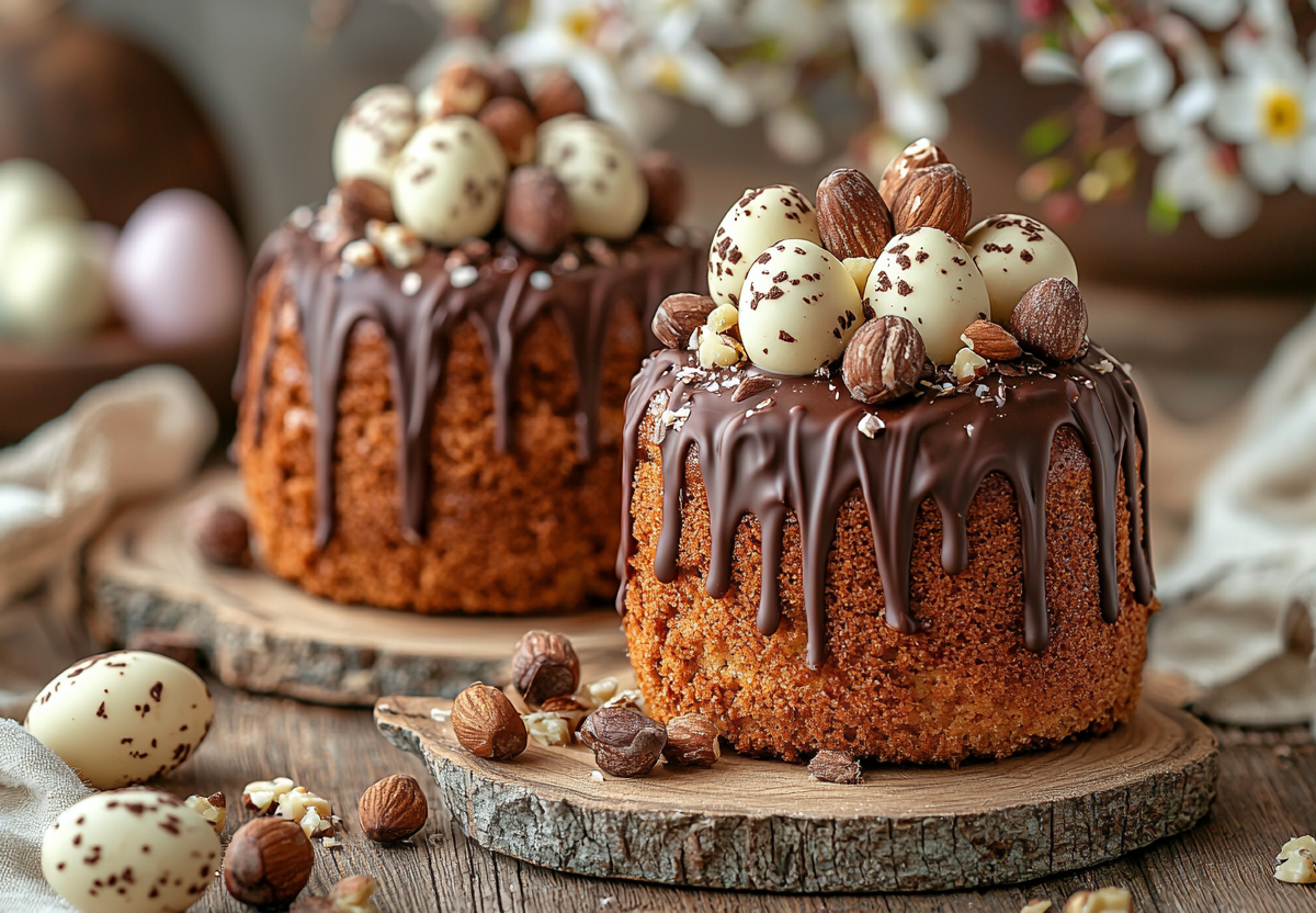 - Готовые куличи остудите, полейте растопленным шоколадом и посыпьте орехами. Украсьте на свой вкус — круглые конфетки или мармеладки.