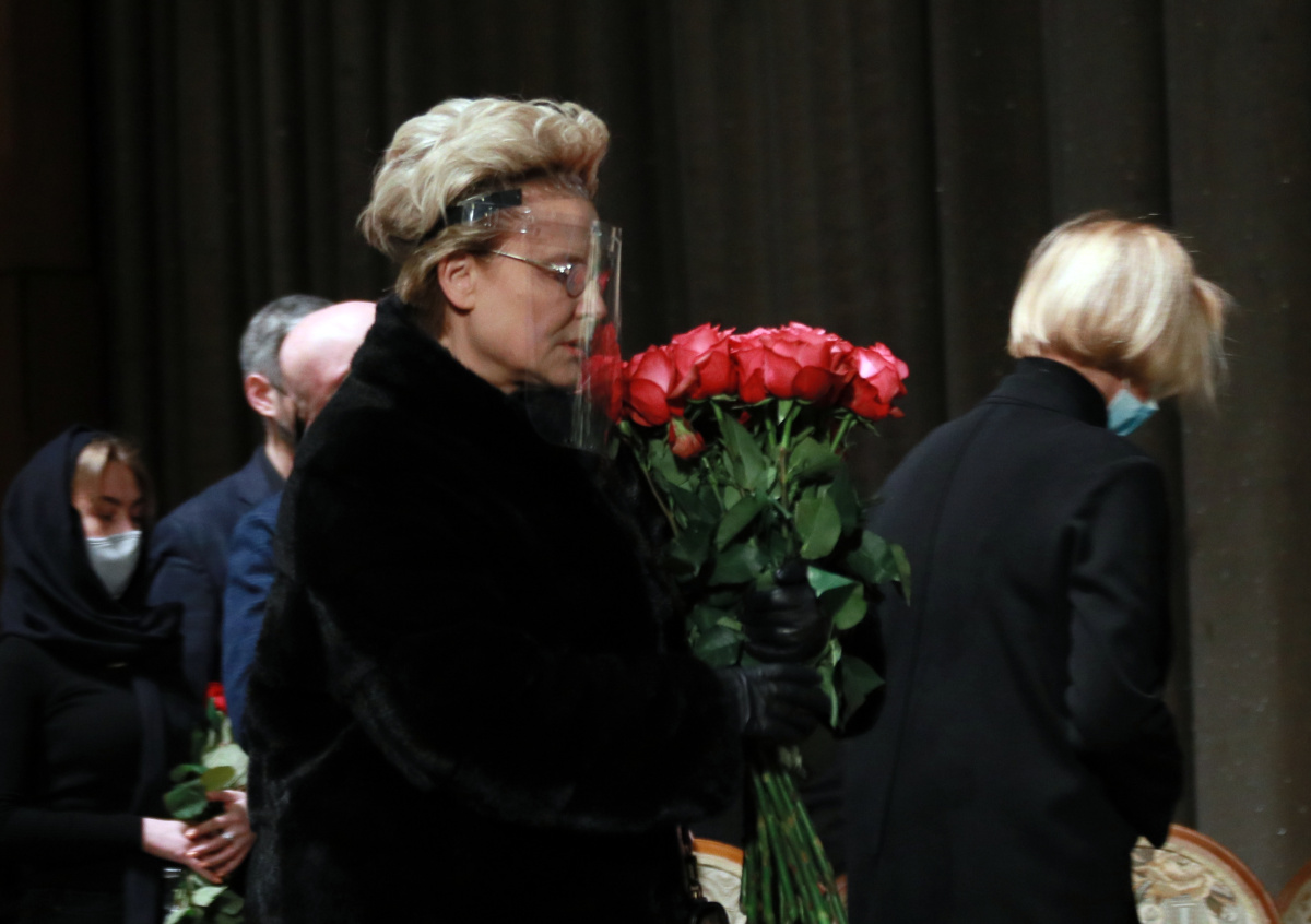 Врач и ведущая Елена Малышева пришла на церемонию прощания с создателем «Ералаша» Борисом Грачевским в защитном экране.