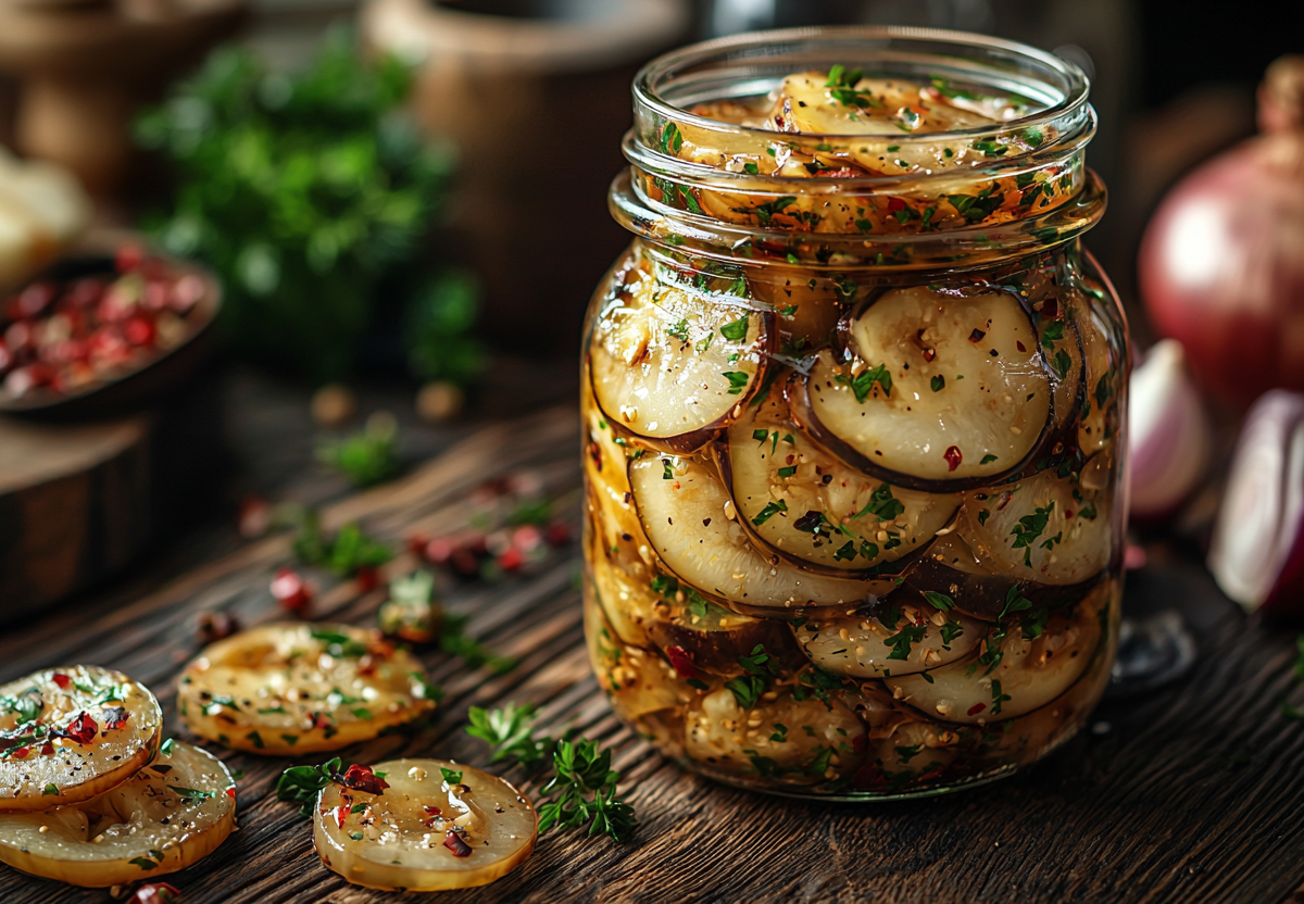 Маринованные баклажаны — это пикантная закуска с насыщенным вкусом, где нежная мякоть баклажанов сочетается с хрустящим луком и остротой чеснока. Ее можно есть уже через 2 часа после приготовления.