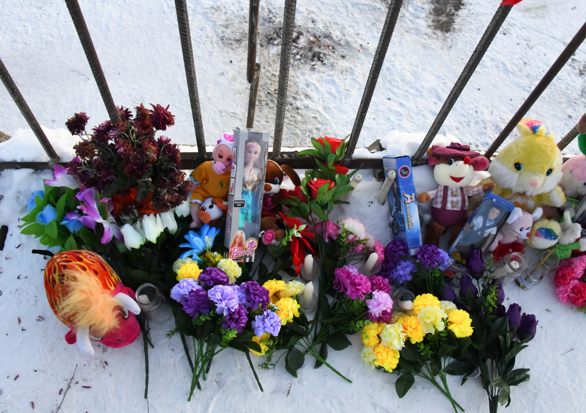 Местные жители организовали на месте трагедии стихийный мемориал, куда приносят цветы и детские игрушки, передаёт ТАСС.