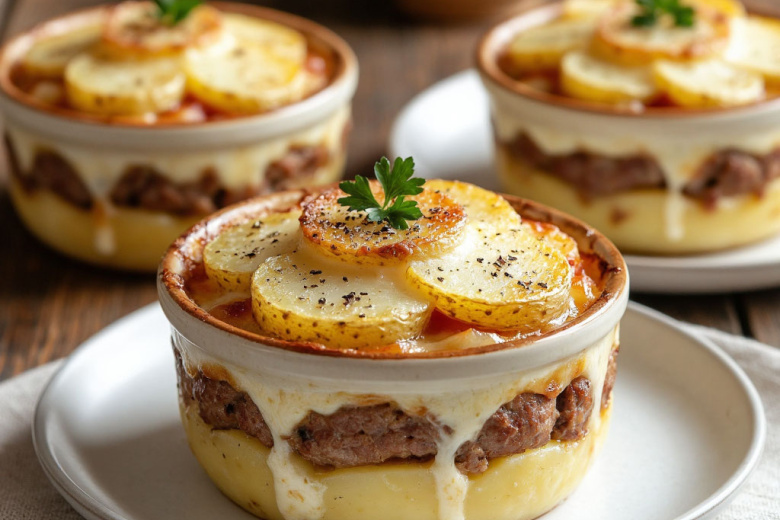 Это блюдо — воплощение уюта и практичности. Приготовленное в порционных горшочках, оно сохраняет все ароматы и соки, превращая простые ингредиенты в нечто невероятно душевное и вкусное. Каждый горшочек — это личный мини-шедевр с идеальным балансом сочного мяса, нежного картофеля и расплавленного сыра. Такой ужин не требует особых усилий, но неизменно дарит ощущение праздника, согревая и душу, и желудок, а главное — исчезает со стола с поистине волшебной скоростью.