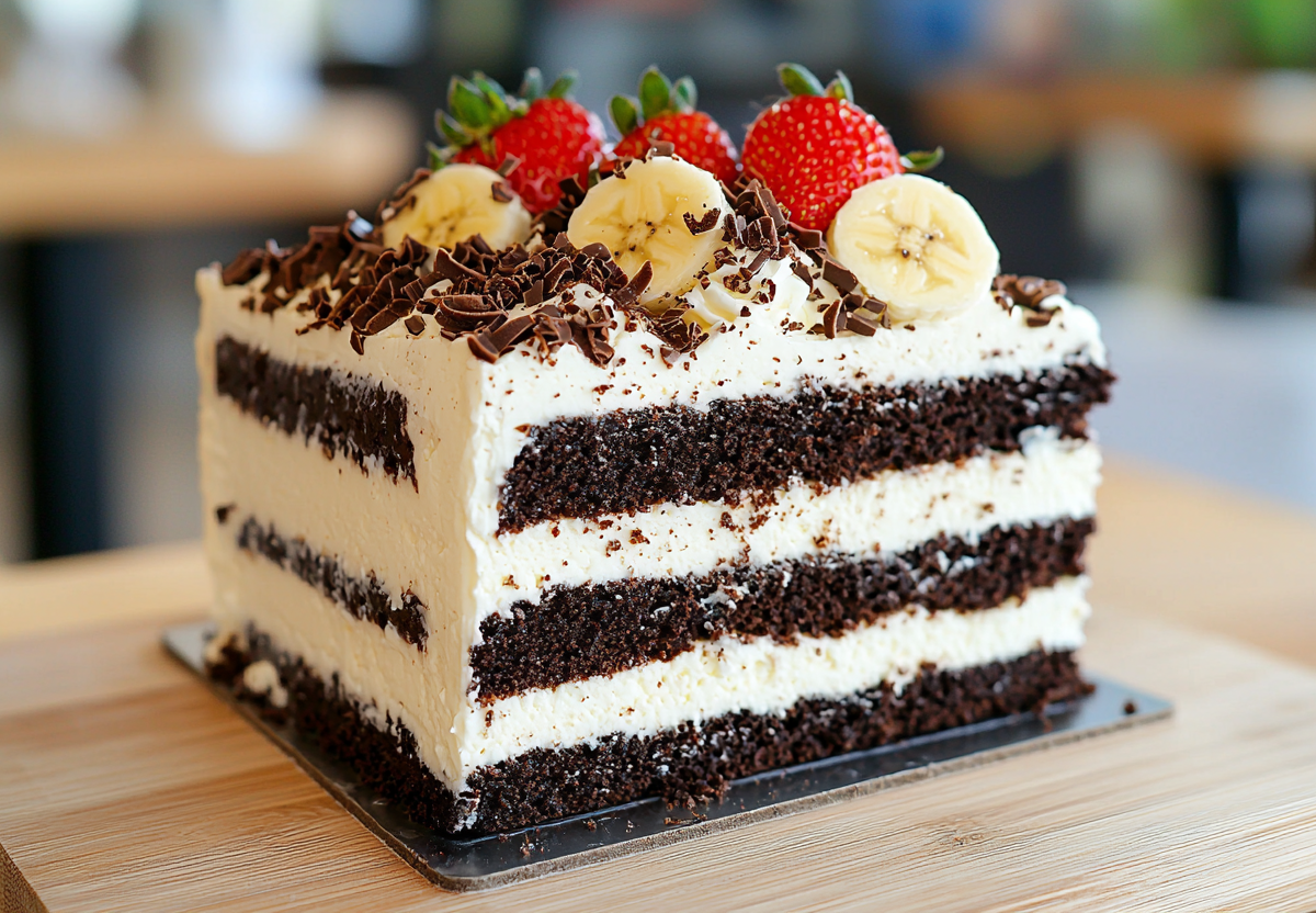 4. Сборка. Промажьте блинчики кремом, чередуя с ломтиками банана и клубники. Приятного аппетита!