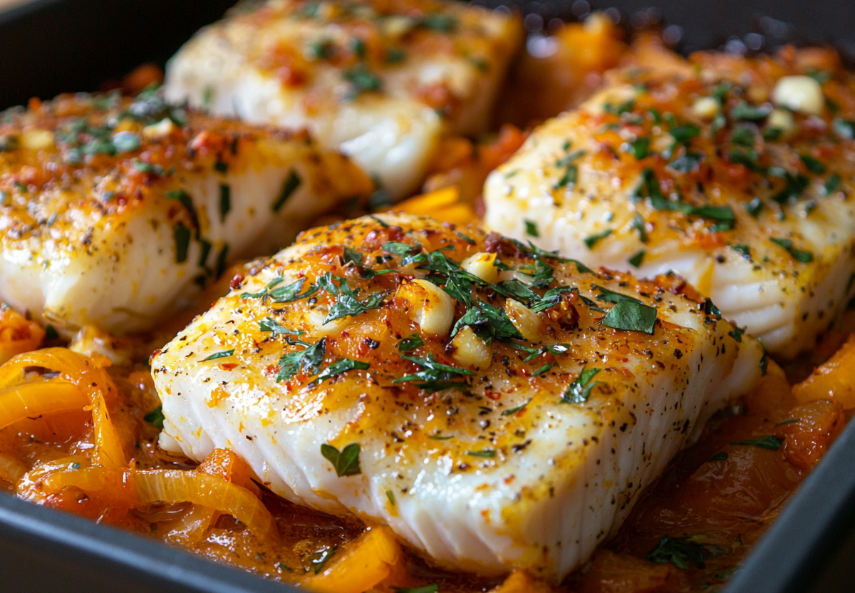 Томатно-овощная подушка делает рыбу невероятно нежной, а чеснок добавляет пикантности. Идеальный вариант для семейного ужина без лишних хлопот!