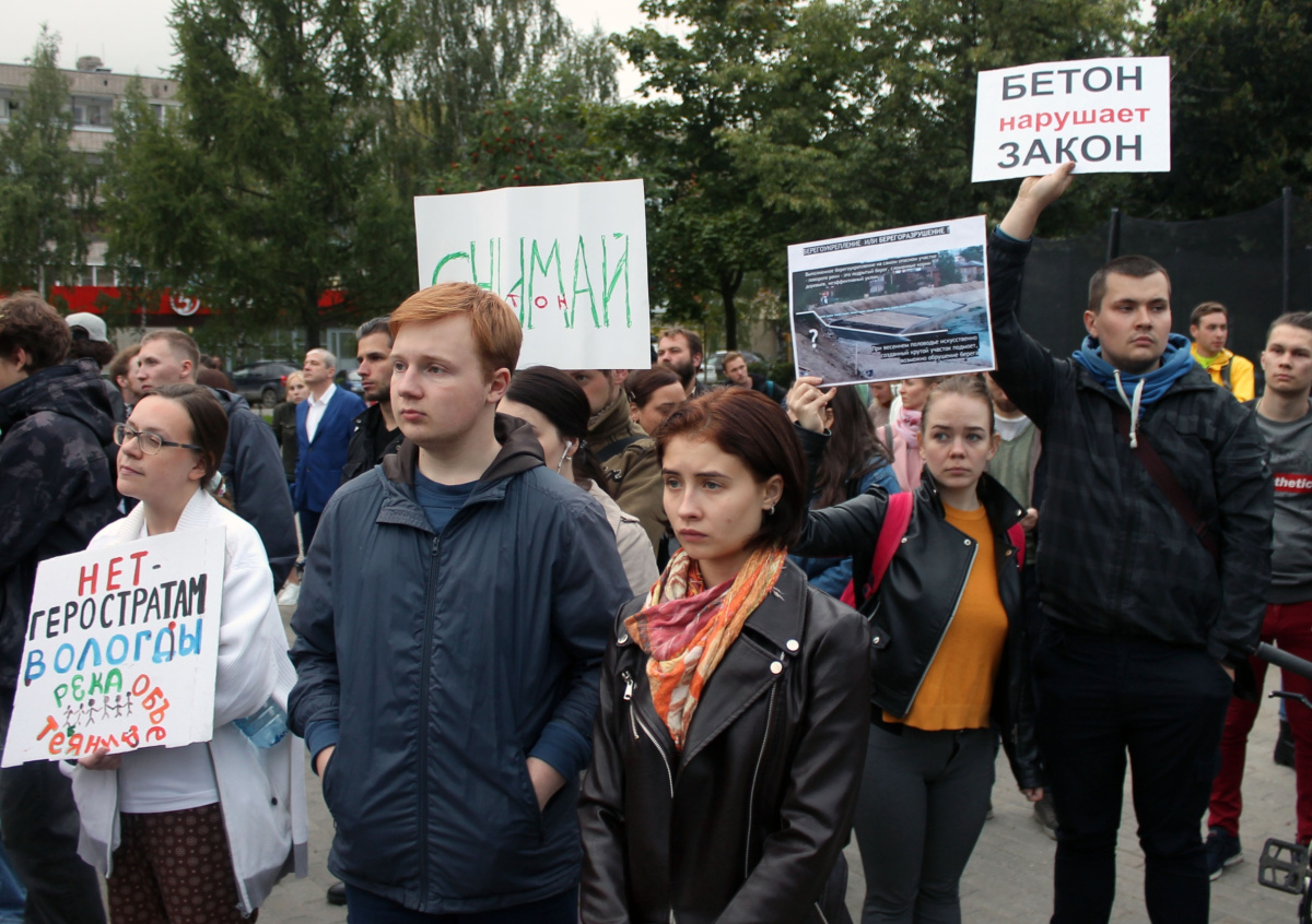 Около пятисот вологжан вышли на протестную акцию 28 августа 2019 года. Организаторы митинга — сообщество «Река объединяет» — провели соцопрос и представили свою концепцию развития набережной. Власти не согласовали градозащитный митинг в том месте, где планировали организаторы акции, отправив их выражать протест в спальном районе, а сами устроили на Кремлёвской площади праздничные мероприятия.
