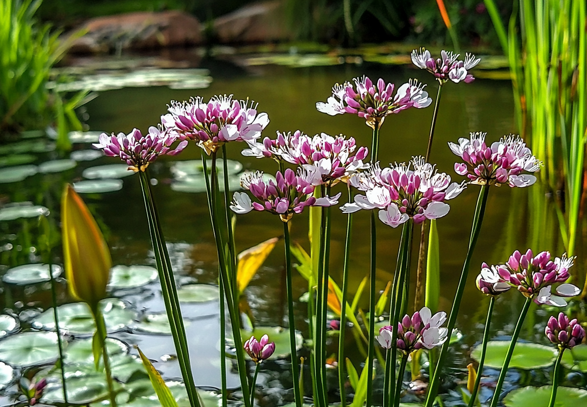 Многолетник-аристократ известен со времен Древнего Рима! Изящное украшение для домашнего пруда! Сусак зонтичный (Butomus umbellatus) — редкое и изысканное растение, известное веками. Его изящные розовато-белые соцветия собраны в пышные «зонтики» и возвышаются на тонких стеблях до 1,5 м. Цветение начинается в начале лета и продолжается до августа, превращая водоём в живую картину.