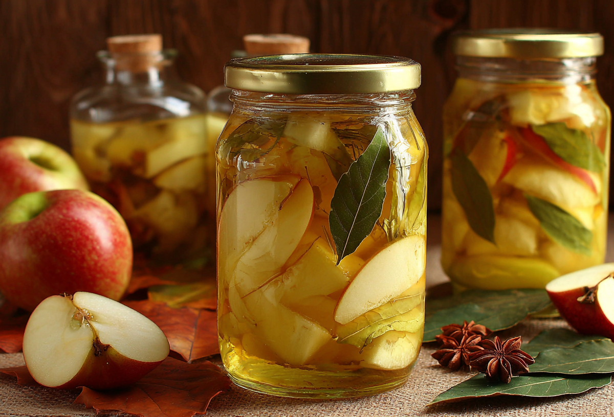 В отличие от привычного варенья, такая закуска сохраняет хрустящую текстуру плодов и сочетает в себе кисло-сладкий вкус с пряными нотками корицы, гвоздики и лаврового листа.
