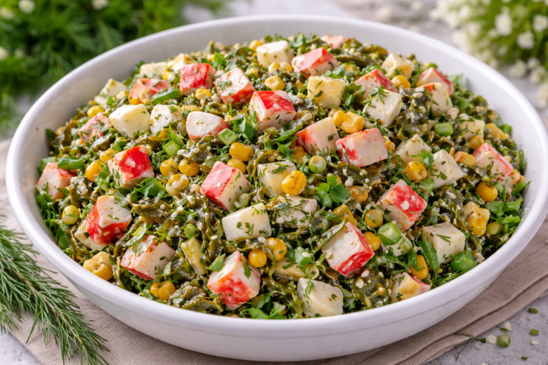 Морская капуста снова полюбилась семье: салат с крабовыми палочками и зеленью — идеально для весны