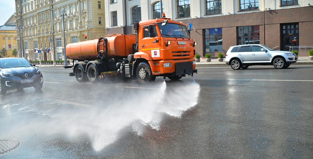 Заместитель мэра Москвы Сергея Собянина Пётр Бирюков сообщил, что это не только охлаждает поверхность и держит её в чистоте, но и снижает пластическую деформацию асфальта.