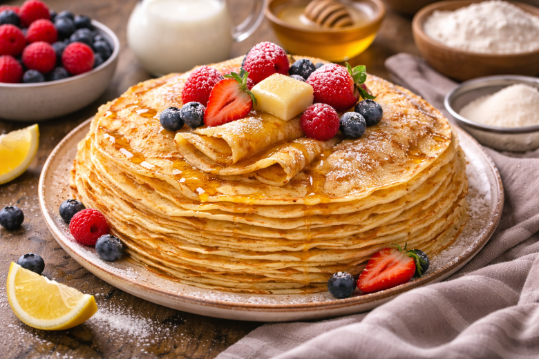 Эти блины у меня всегда получаются с первого раза — тонкие, нежные и с красивыми румяными краями. Весь секрет в порядке замеса: стоит лишь изменить один шаг — и тесто ведет себя идеально. Блины выходят эластичными, без дыр и комочков, отлично подходят и для сладких начинок, и для сытных — именно такие хочется печь всю Масленицу.