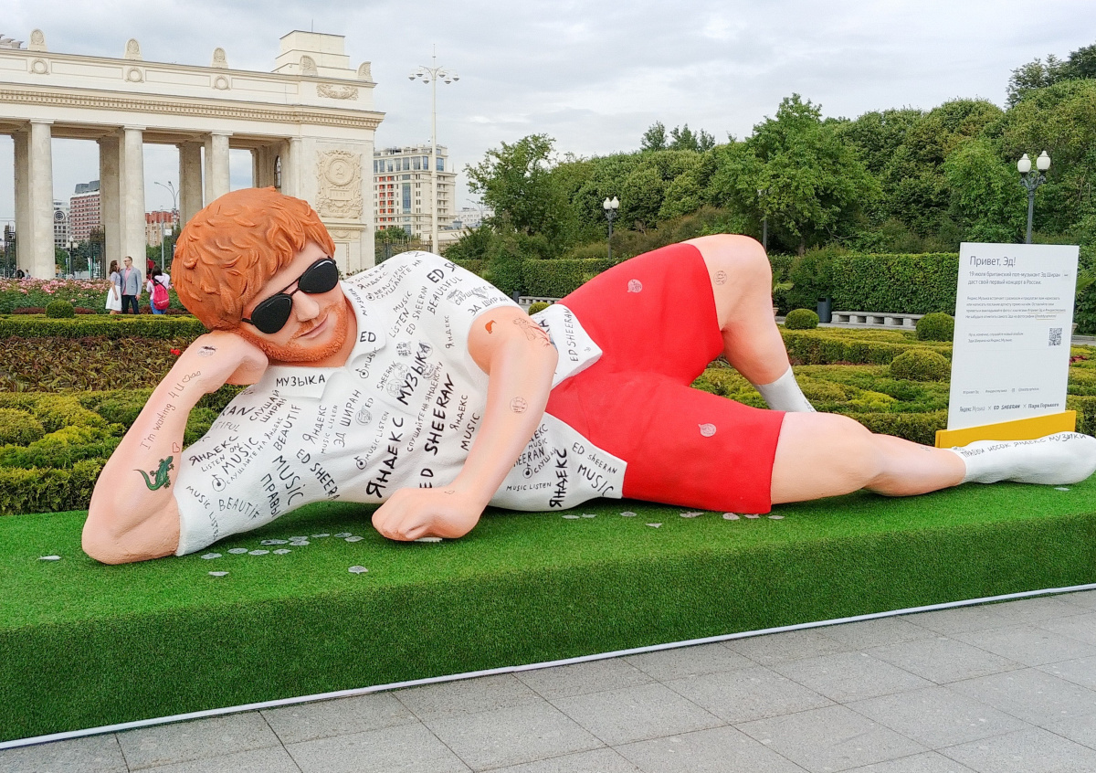 Как ранее сообщал News.ru, инсталляция «Привет, Эд!» была установлена перед входом в столичный парк Горького. Фигура размещена напротив арки главного входа. Статуя появилась в Москве перед первым стадионным концертом музыканта в России. Посетители парка могут написать своё послание исполнителю прямо на фигуре.