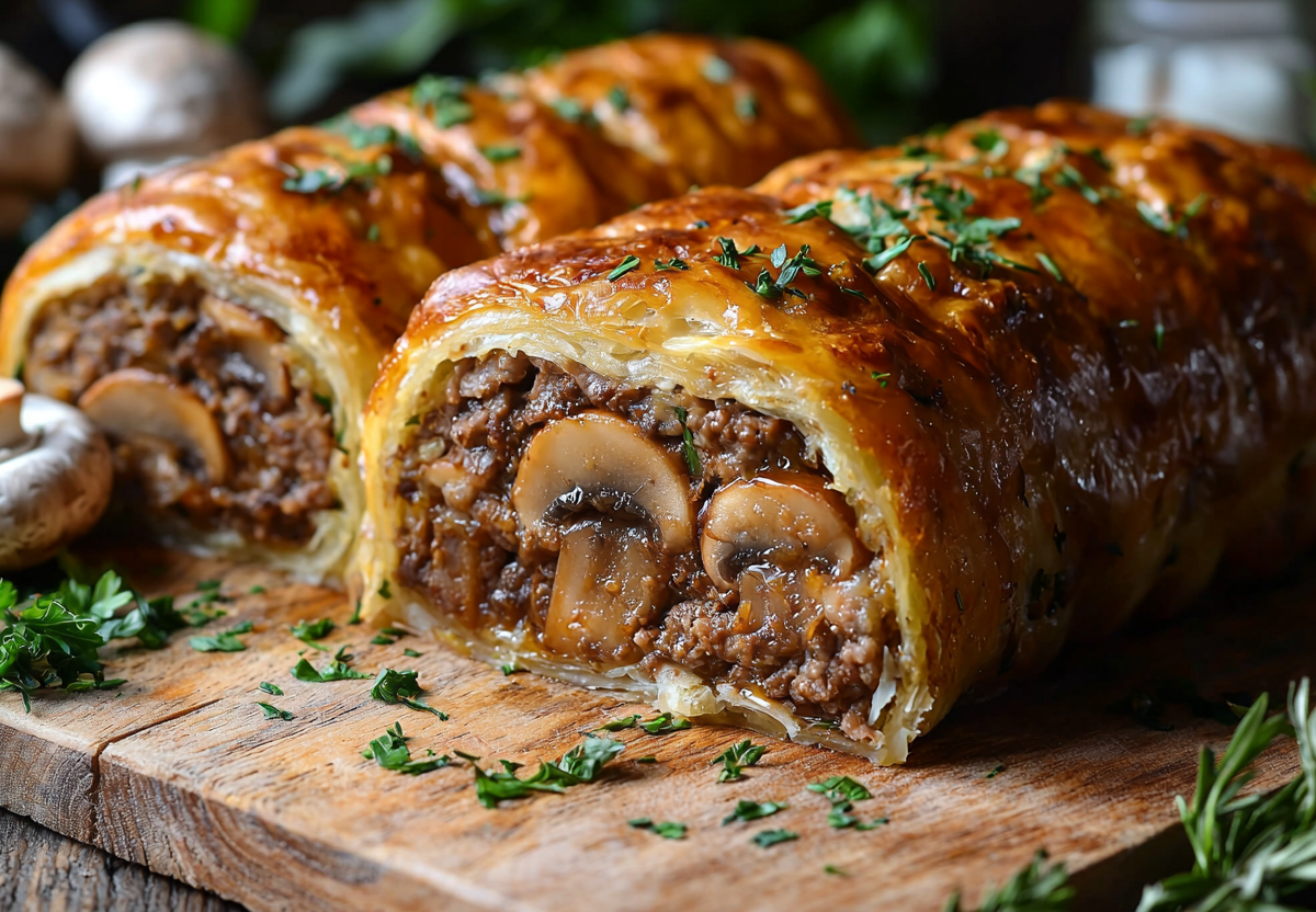 Мясной рулет с грибами «Избушка» — очень вкусный и простой: готовлю на Новый год — свернуть за 10 минут и забыть в духовке. Этот рулет — настоящее праздничное блюдо, которое удивит и домашних, и гостей. Хрустящее слоёное тесто, сочный мясной фарш, ароматные грибы и сыр создают неповторимую вкусовую симфонию.