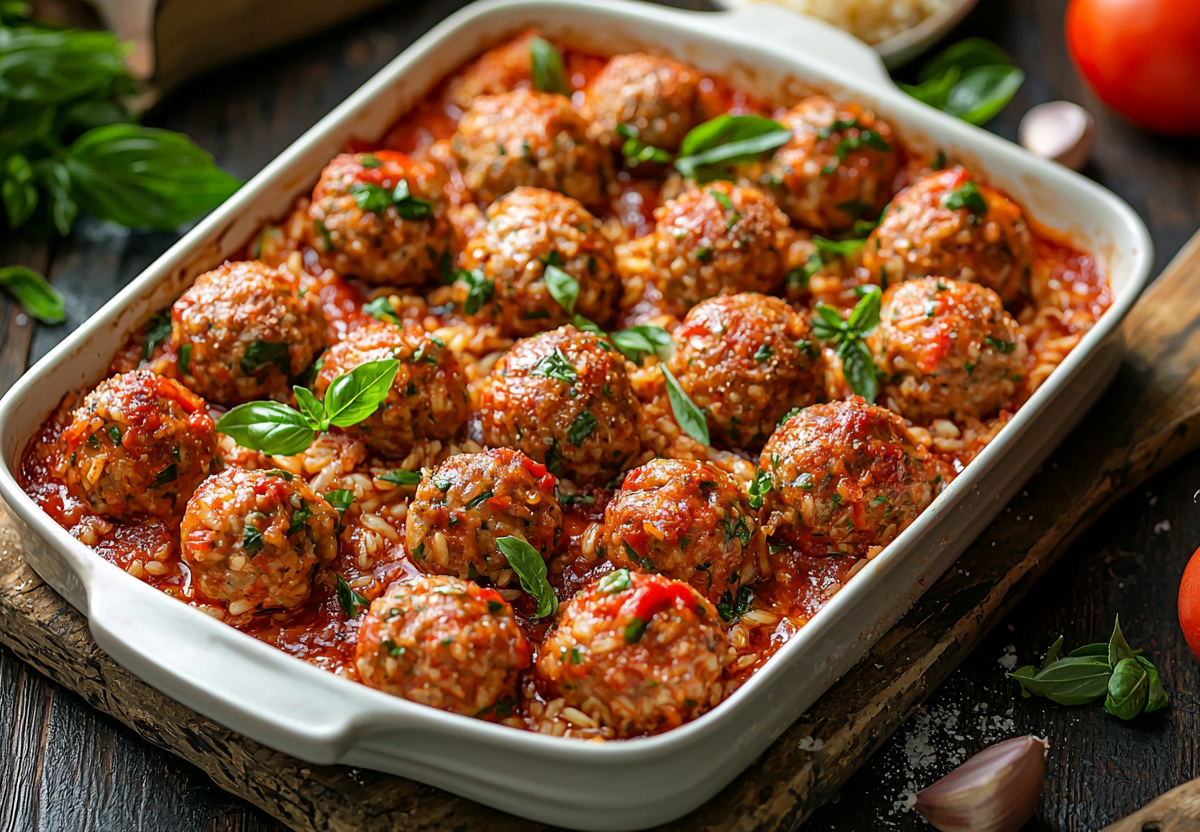 Рис внутри шариков во время запекания впитает сок и станет невероятно ароматным. Подавайте горячими, посыпав зеленью. Это отличный вариант сытного и экономного ужина для всей семьи!