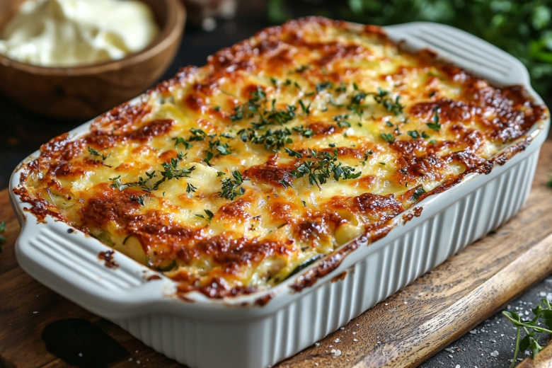 Для этой запеканки вам понадобится: 500 г куриного фарша из грудки или более жирных частей курицы, 1 луковица, 1 морковь, 6 картофелин, 100 г горошка, 50 мл бульона, 100 г сыра, 50 мл сливок, соль, перец. Картофель отварите и приготовьте пюре со сливками. Лук и морковь обжарьте, добавьте фарш и готовьте 10 минут. Влейте бульон, добавьте горошек, тушите 5 минут. В форму выложите мясную основу, сверху распределите пюре. Посыпьте сыром и запекайте 25 минут при 200°C до румяной корочки. Дайте настояться 10–15 минут перед подачей.
