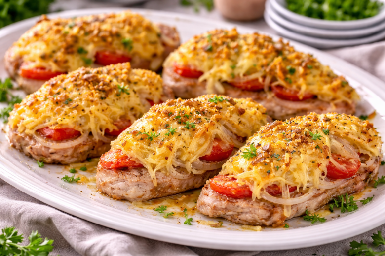 Если хочется удивить гостей чем-то знакомым, но с изюминкой — этот вариант мяса по-французски идеально подойдет. Здесь все перевернуто: картофель оказывается сверху и делает блюдо особенно сочным и нежным.