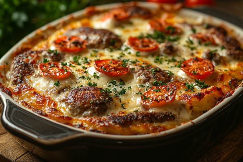 Это мясо по-французски «Офицерское» — гениально простое и невероятно вкусное блюдо, которое станет главным украшением праздничного стола 23 февраля. Его необычность в том, что сочное мясо, нежный картофель, ароматные помидоры и расплавленный сыр выкладываются слоями и запекаются до румяной корочки, создавая настоящий кулинарный шедевр. Получается обалденная вкуснятина: мягкие, пропитанные соком ломтики свинины или говядины, тающий во рту картофель, сочные помидоры с легкой кислинкой и аппетитная золотистая сырная шапка, которая так и манит отломить кусочек. Блюдо выглядит нарядно и торжественно, достойно самых почетных гостей и защитников отечества.