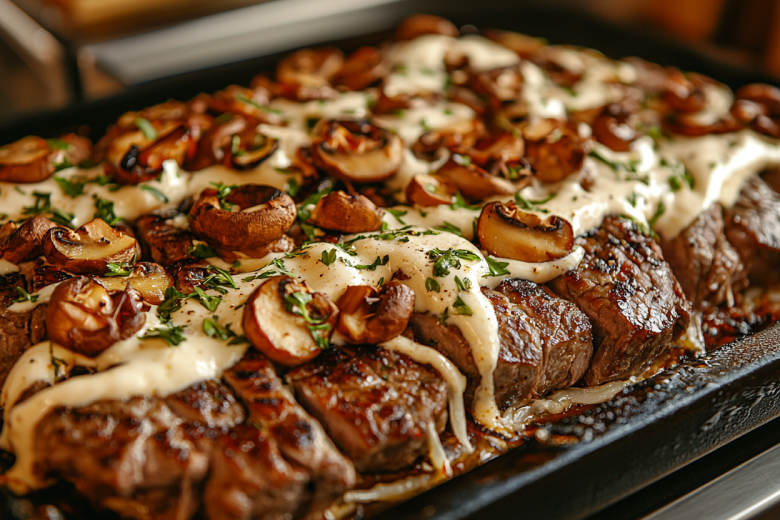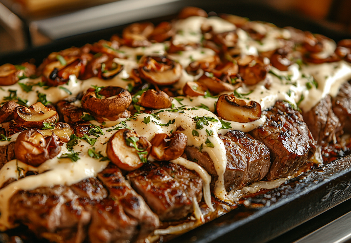 Название говорит само за себя! Его вкус — многослойное наслаждение: сначала сочное и ароматное маринованное мясо, затем слой пикантных жареных грибов с луком, свежий акцент помидора и золотистая тягучая сырная корочка.