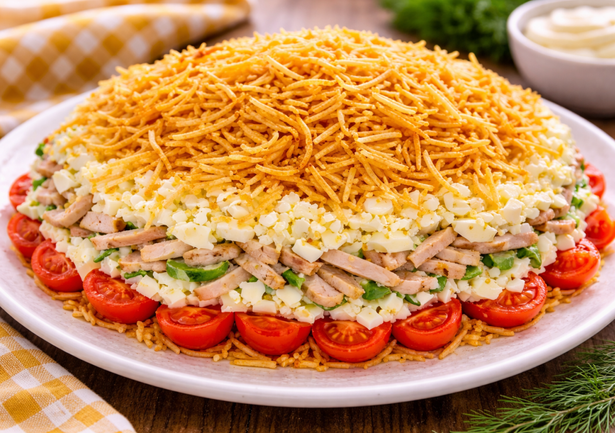 На любое застолье у меня есть один салат-выручалочка — «Минск». Он получается очень сытным, ярким и невероятно вкусным. Хрустящий картофель сверху, сочные помидоры, копченая куриная грудка и нежный соус делают его таким, что гости всегда просят рецепт. Готовится салат довольно просто, а выглядит эффектно.