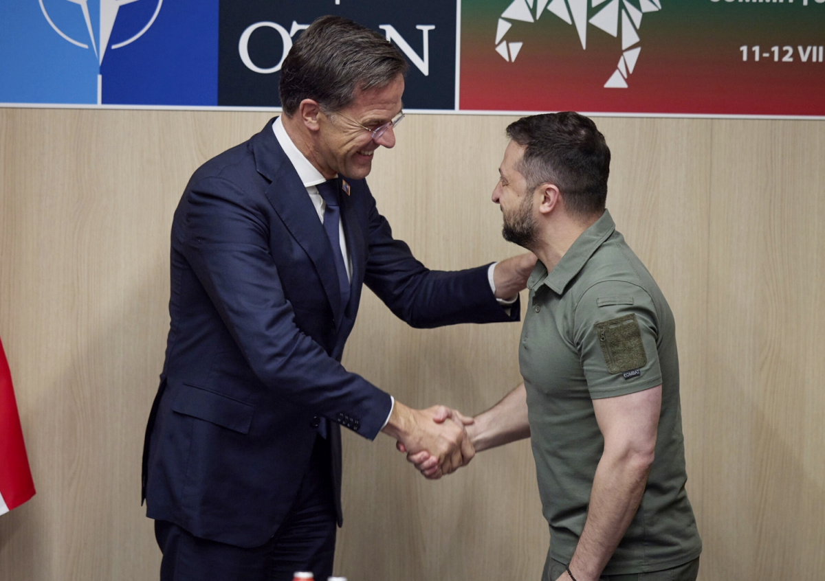 Президент Украины Владимир Зеленский на прошедшем в Вильнюсе саммите НАТО предложил премьер-министру Нидерландов Марку Рютте свой кофе в ответ на просьбу приготовить ему кофе. Любезная беседа была запечатлена на видео и опубликована в Telegram-канале журналиста кремлевского пула Дмитрия Смирнова «Пул N3».