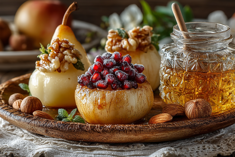 Яблоки, запеченные с медом и орехами: удалите сердцевину, наполните смесью измельченных грецких орехов, меда, изюма и корицы, запекайте 20 минут при 180 °C. Яблоки становятся мягкими, с карамельной сладостью и ореховым хрустом.