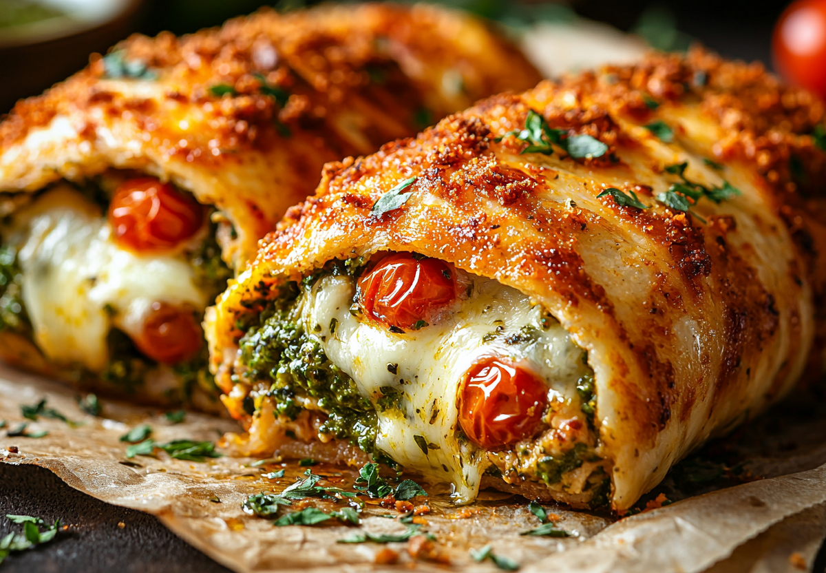 На замену надоевшим котлетам: хрустящий куриный конверт с начинкой — жарим полезно без тонны масла. Это настоящая находка для тех, кто следит за фигурой! Блюдо выглядит эффектно, готовится быстро, а главное — всего 180 ккал на 100 г! Сочная курица, ароматный песто, нежные черри и пикантный пармезан создают идеальное сочетание вкусов.