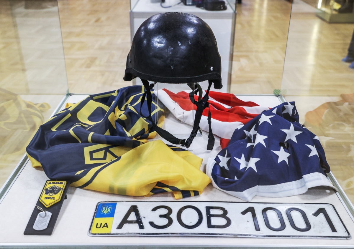 Защитный шлем военнослужащего Вооруженных сил Украины с нанесенной эмблемой, обозначающей принадлежность к СС Защитный шлем военнослужащего Вооруженных сил Украины с нанесенной эмблемой, обозначающей принадлежность к СС Фото: Сергей Булкин/NEWS.ru