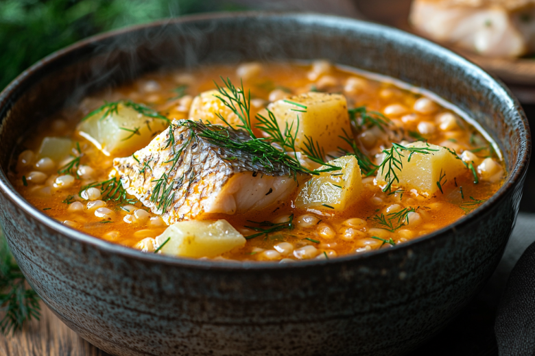 Этот суп сочетает, казалось бы, несочетаемое: он легкий, почти диетический, но при этом невероятно наваристый и сытный. Рыбный бульон, в отличие от мясного, не оставляет ощущения тяжести, а перловка и картофель дают нужную плотность. Идеальный обед для холодного дня.
