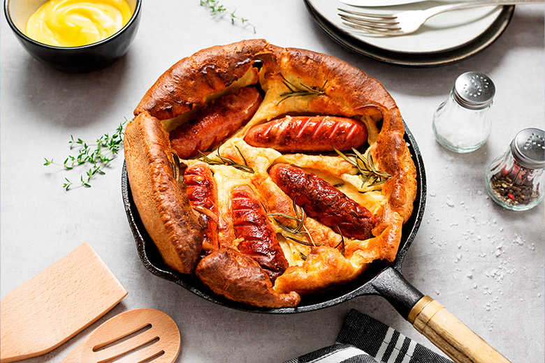 Традиционное британское блюдо «Жаба в норе» известно уже с XVIII века. Историки кулинарии так и не выяснили, кто придумал такое смешное название для сытного ужина с сосисками: вероятно, неизвестный кулинар подумал, что сосиски, выглядывающие из теста, напоминают квакушек в пруду. Уже многие годы «Жаба в норе» остается простым и вкусным вариантом ужина, традиционно ассоциирующимся с Великобританией. Такие сосиски вполне мог есть Гарри Поттер за ужином в Большом зале Хогвартса. Предлагаем повторить этот простой рецепт и вам!