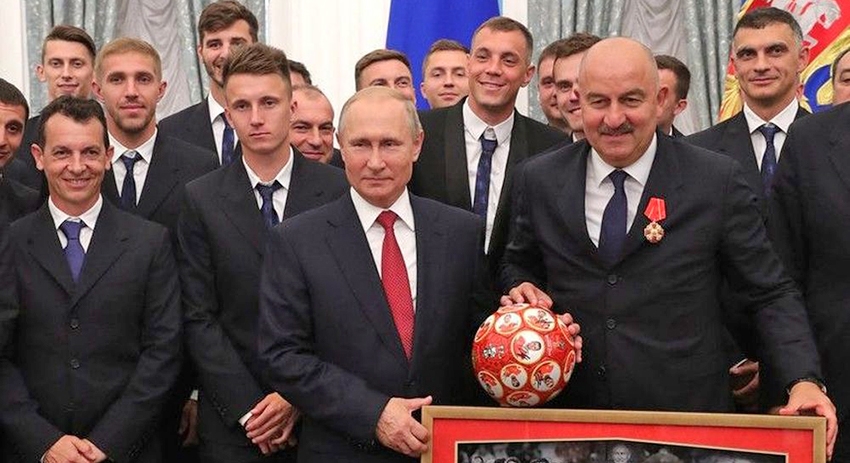 Президент РФ Владимир Путин и тренер сборной Станислав Черчесов с футболистами во время вручения госнаград Президент РФ Владимир Путин и тренер сборной Станислав Черчесов с футболистами во время вручения госнаград Фото: kremlin.ru
