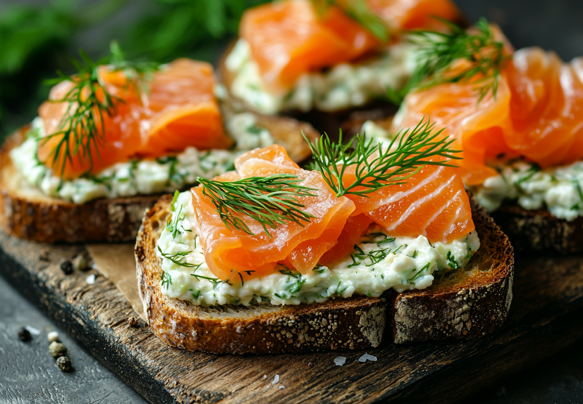 Эта намазка — выбор для тех, кто хочет праздновать красиво и с пользой. Нежное пюре спелого авокадо, легкий творог, кусочки слабосоленого лосося и свежий укроп создают невероятно свежий, сбалансированный и очень фотогеничный паштет. Он легкий, но сытный, богат полезными жирами и белком — идеально после обильного застолья.