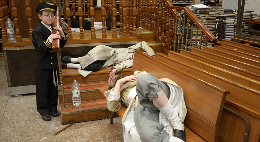Ну а самой интересной в этот праздник, наверное, выглядит всё-таки церковная служба. Потому что она тоже проходит... очень весело! В синагогах в этот день обязательно читают «Свиток Эстер», в котором описана вот эта замечательная история спасения еврейского народа от истребления. И каждый раз, когда в тексте упоминается Аман, все евреи, находящиеся в синагоге, обязательно должны свистеть, топать и трещать специальными пуримскими трещотками, выражая неприязнь к подлому злодею и радость от того, что иудейский народ здравствует по сей день.