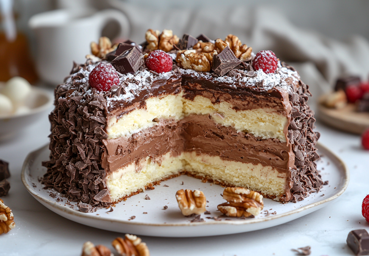 Если классический наполеон с его слоеными коржами и заварным кремом стал слишком привычным, а душа просит более легкой, современной и изысканной сладости, этот торт-суфле станет настоящим открытием. Он сочетает в себе насыщенный шоколадный вкус, легкую воздушную текстуру и приятную хрустящую нотку от орехов, создавая идеальный баланс. В отличие от многих традиционных тортов, этот десерт не перегружает своей сладостью, оставаясь благородным и утонченным финалом обеда. Он выглядит по-ресторанному элегантно, но его приготовление — увлекательный кулинарный эксперимент, доступный даже новичку.