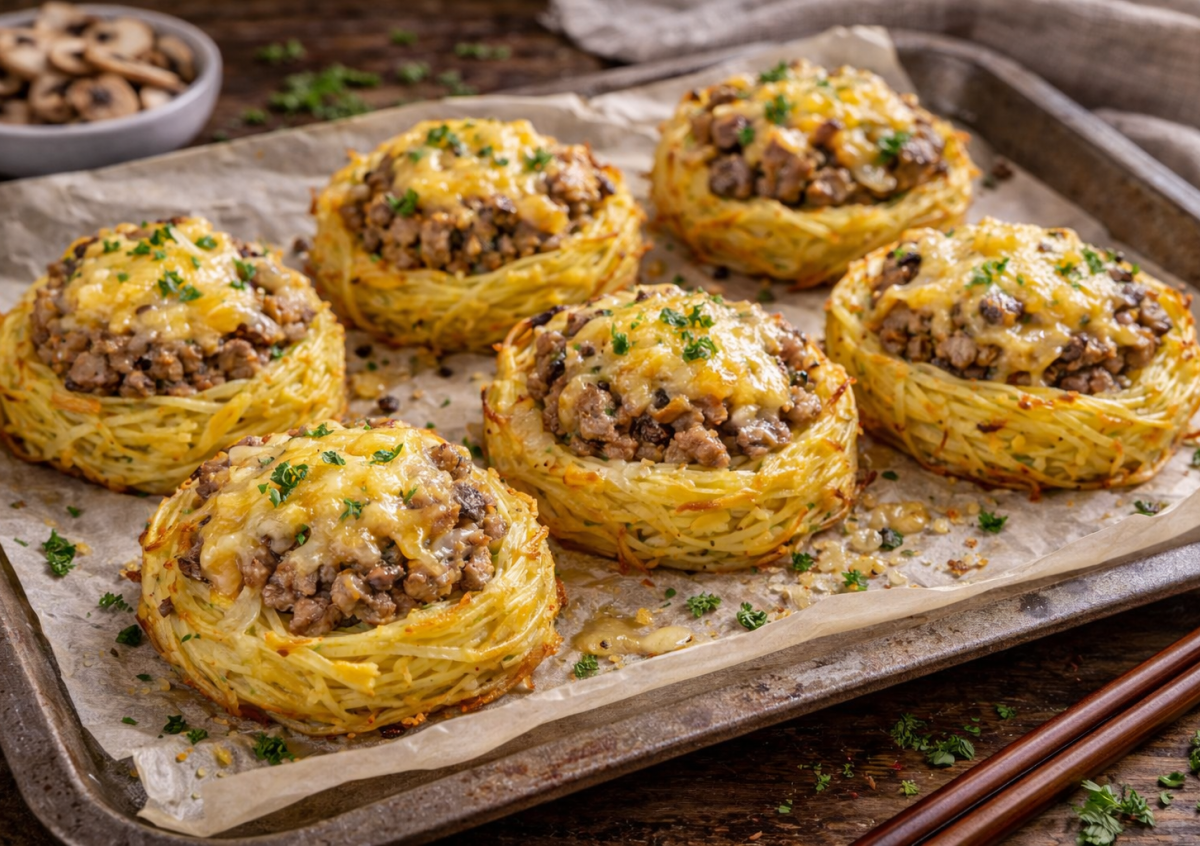 Нарядные гнезда из картошки и фарша — когда обычные продукты превращаются в шикарное блюдо