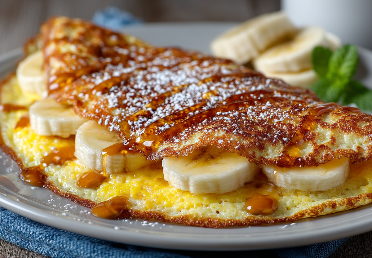 Для приготовления вам понадобится: 55 г овсяных хлопьев (геркулес), 40 мл молока, 1 яйцо, 30 г арахисовой пасты, 1 банан. Овсянку смешайте с молоком и яйцом, дайте постоять 1 минуту. Разогрейте сковороду с небольшим количеством масла, вылейте смесь, жарьте на среднем огне 2–3 минуты до золотистого цвета, затем переверните и жарьте еще 1 минуту.