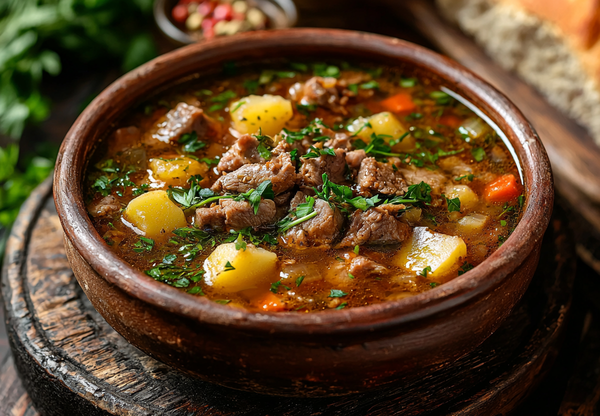 Мясо промываю, заливаю холодной водой (около 2 л) и ставлю варить. После закипания снимаю пену, убавляю огонь и варю 1,5–2 часа до мягкости мяса. Картофель очищаю и нарезаю крупными дольками. Морковь нарезаю кружочками, лук — крупными кубиками. Когда мясо сварится, вынимаю его из бульона и отделяю от костей. В процеженный бульон закладываю картофель, морковь и лук. Варю 15–20 минут до мягкости овощей. Возвращаю мясо в кастрюлю. В отдельной миске смешиваю молоко (оно должно быть комнатной температуры) с желтком. Постепенно вливаю в эту смесь половник горячего бульона, постоянно помешивая, это предотвратит сворачивание желтка. Затем переливаю полученную заправку обратно в кастрюлю с супом. Довожу почти до кипения, но не кипячу. Добавляю соль, специи и обильно посыпаю рубленой зеленью. Подаю сразу же, пока суп не остыл.
