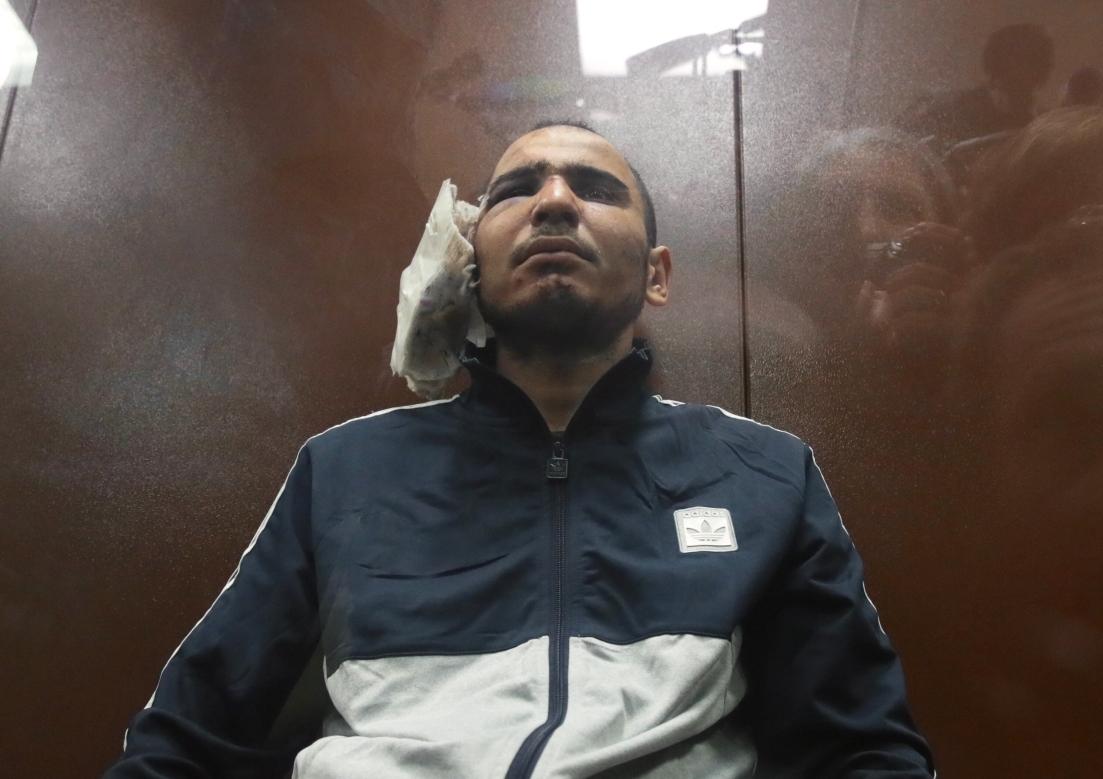 Рачабализода Саидакрами Муродали, задержанный по подозрению в террористическом акте в «Крокус Сити Холле», в здании Басманного суда Москвы, где проходит избрание меры пресечения в отношении четырех задержанных подозреваемых