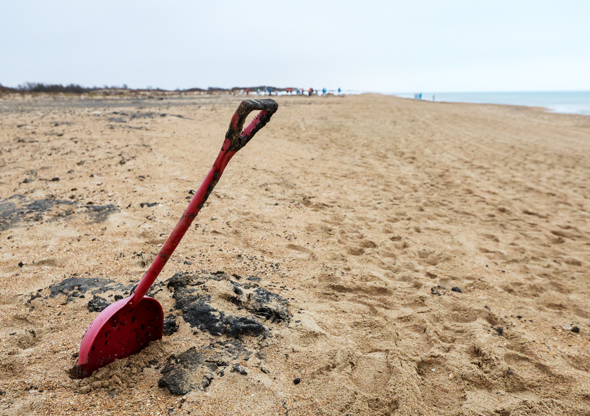 Загрязненный песок в результате разлитого мазута на пляже Загрязненный песок в результате разлитого мазута на пляже Фото: Алексей Белкин/NEWS.ru