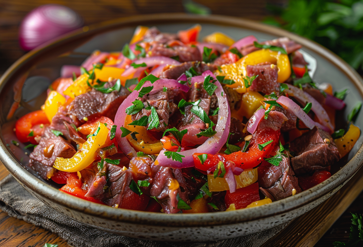Этот необычный салат удивит даже искушенных гурманов — нежнейший говяжий язык в компании сочных перцев и сыра создает неповторимый вкусовой дуэт. Готовится проще простого.
