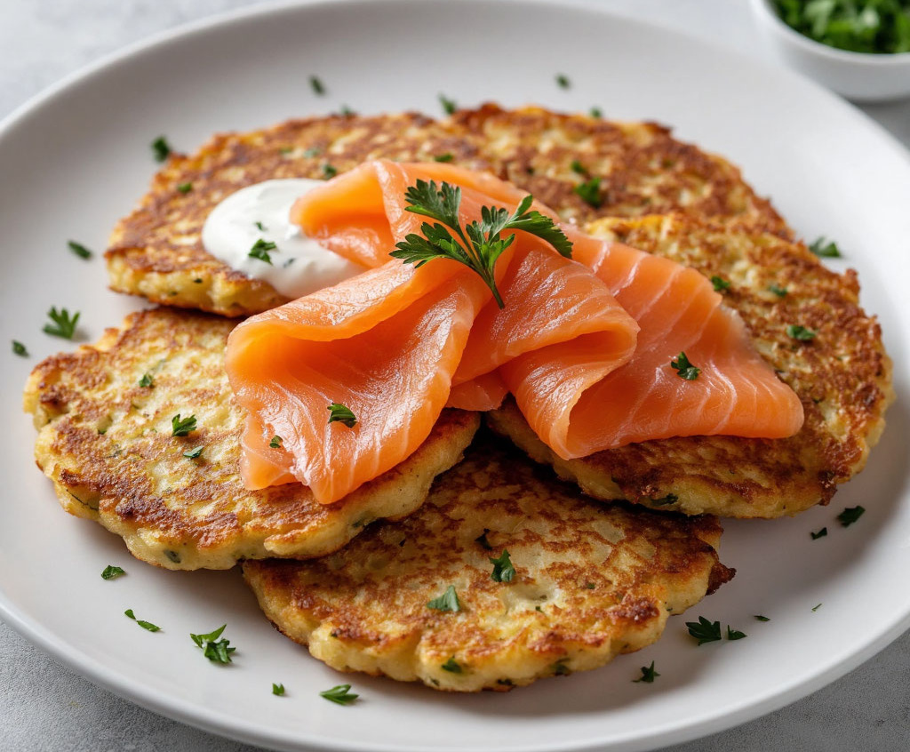 Вам потребуется: 2 крупные картофелины, 1 ст. л. картофельного крахмала, соль, растительное масло для жарки. Для подачи: 150 г слабосоленого лосося, 1 авокадо, 100 г сметаны или греческого йогурта, свежий укроп. Картофель натрите на длинной корейской терке или очень тонко нарежьте соломкой. Отожмите лишний сок, смешайте с крахмалом и щепоткой соли. Разогрейте в сковороде достаточное количество масла. Выкладывайте порцию картофеля тонким слоем, формируя лепешку с дырками, как сеточка. Обжаривайте с двух сторон до хруста. На готовую теплую картофельную «сеточку» выложите ломтики лосося и авокадо. Сбрызните сметаной, смешанной с укропом, и подавайте немедленно.