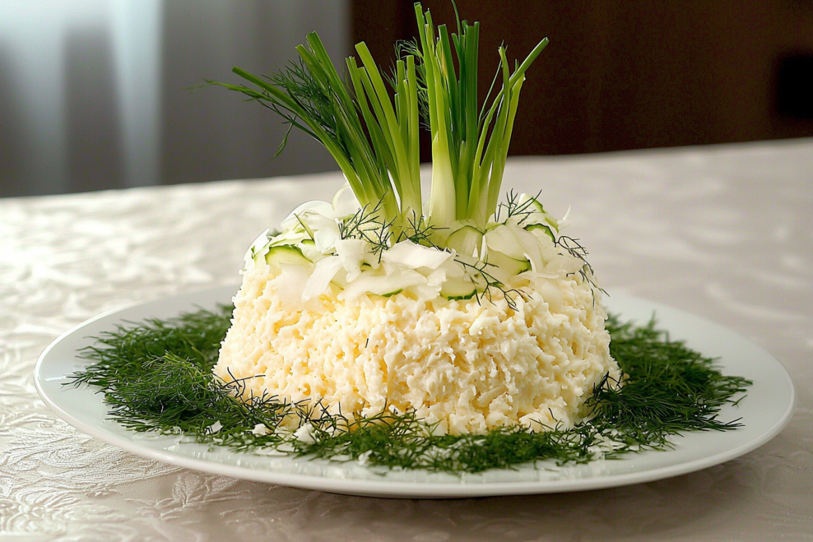 Не оливье и не закуска наспех: салат «Подснежник» без мяса, который выглядит эффектно и съедается до крошки