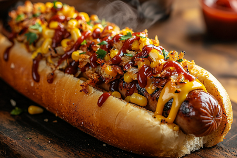 Не просто булка с сосиской, а взрыв вкуса! Готовим хот-дог с сырной кукурузой! Нежная сосиска, хрустящий лук, сладкая кукуруза и тягучий сыр создают идеальную комбинацию. Простое уличное блюдо превращается в сытный и невероятно аппетитный шедевр.