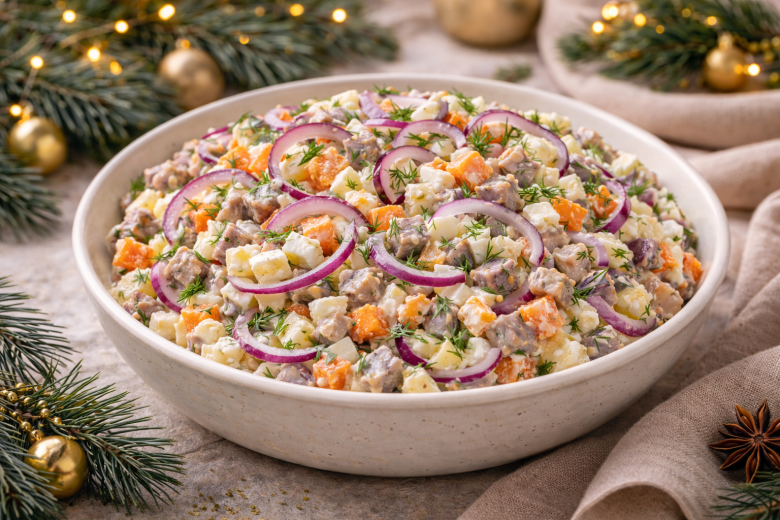 Салат «Копейки» — из разряда простых, но беспроигрышных. В нем нет ничего лишнего: слабосоленая селедка, картофель, яйца и немного свежей зелени создают очень понятный, домашний вкус, знакомый еще с детства. Готовится быстро, выглядит аккуратно и отлично подходит как для обычного ужина, так и для праздничного стола.