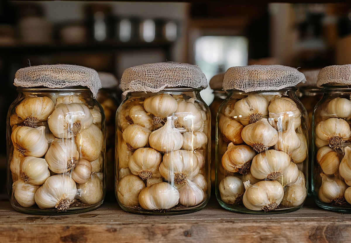 Для этого вам понадобятся только чистые стеклянные банки и марля. Тщательно вымойте и простерилизуйте банки, как для консервации. Полностью высушите их. Чеснок очищать не нужно — просто уложите головки плотно до самого верха банки. Вместо крышки закройте горлышко сложенной в несколько слоев марлей — это обеспечит необходимую вентиляцию.