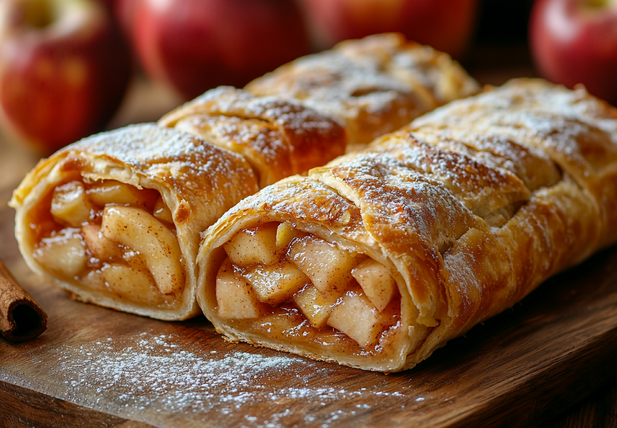 Этот штрудель особенно хорош теплым с шариком ванильного мороженого, а простота приготовления делает его идеальным десертом для внезапных гостей или семейного ужина.