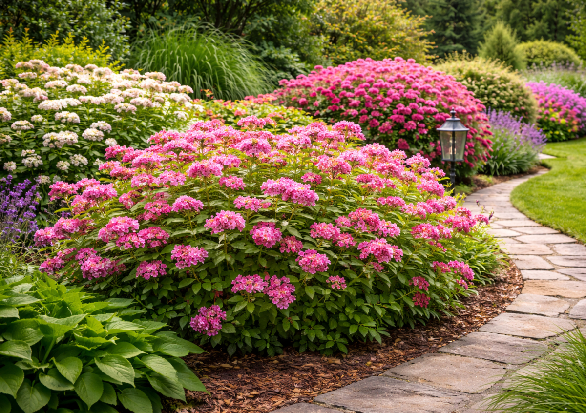 Главное преимущество спиреи — ее морозостойкость. Куст без проблем выдерживает понижение температуры до -40 °C, не вымерзает даже в бесснежные зимы и не нуждается в утеплении. Это подтверждают питомники и практикующие ландшафтные дизайнеры в регионах с рисковым земледелием. Цветение — еще один весомый плюс. С июня и почти до сентября куст покрывается плотными «шапками» розовых, малиновых или белых цветов. Интересный факт: обрезка ранней весной стимулирует образование большего количества цветоносов, из-за чего спирея может цвести еще обильнее.