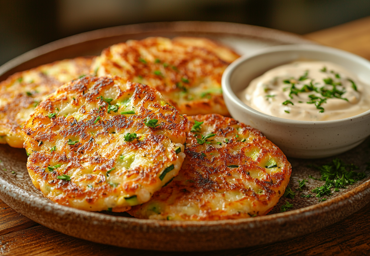 Нежные кабачковые оладьи с хрустящей корочкой. Секрет маминого рецепта — сочные внутри и румяные снаружи овощные оладушки с пикантным соусом. Идеальный завтрак или лёгкий ужин!