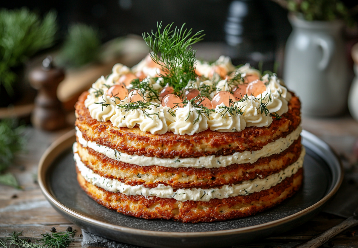 Для прослойки обжарьте 3 крупные луковицы до карамельного цвета и смешайте с 200 г мягкого сливочного масла. Собирайте торт слоями: печеночный блин — луковая прослойка, повторяя 5-6 раз. Дайте настояться в холодильнике 3–4 часа — за это время вкусы идеально соединятся.