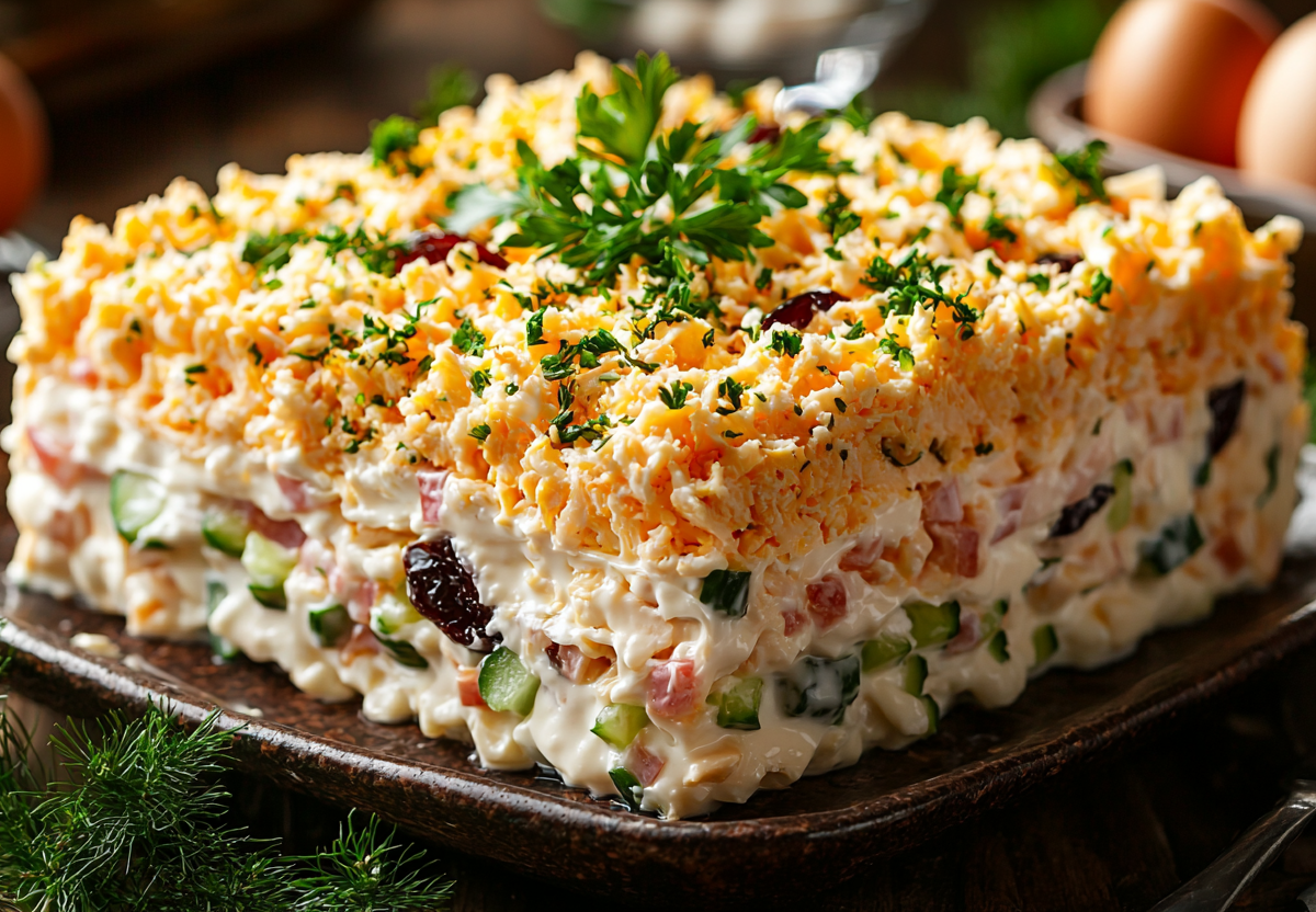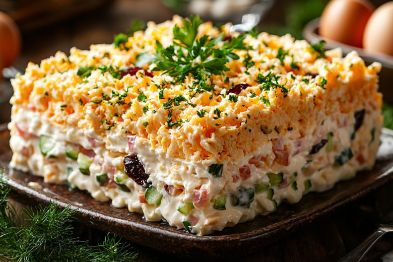 Ни один Новый год не обходится без «Дамского каприза». Этот салат поражает и видом, и вкусом. Это настоящий праздник в тарелке, который оправдывает свое капризное название.